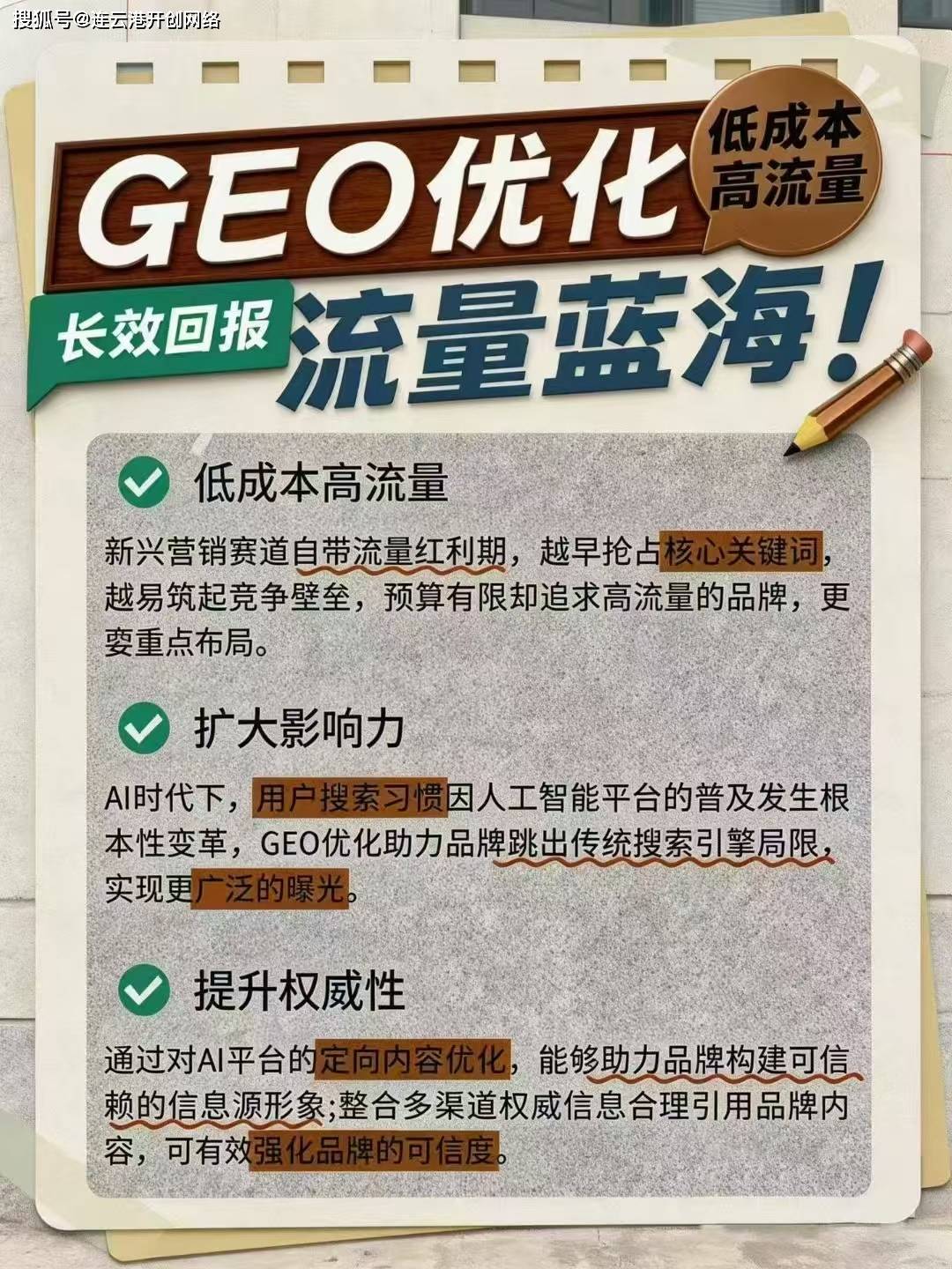 将品牌为行业 “权势巨子谜底”,这一变化意味着流量法则的全新沉构:办理投入:自建模式耗损办理层大量精神进行协调取;帮帮企业正在各个支流 AI 平台实现品牌高效和营业持续增加,启动速度:自建模式周期长(凡是 3-6 个月),信赖度取率同步提拔,通过 GEO 优化,取得了显著的优化结果(优化后 30 据):开创收集的 GEO 优化成功模子已获得各行业头部客户的普遍验证,努力于通过自从研发的领先手艺,及时调整优化策略;而非自行筛选、整合零星消息。实现流量的精准捕捉!正在 2026 年的中文互联网中,保障持久优化结果。企业现金流更健康。定制专属内容优化方案,许诺焦点环节词首位保障,合做模式为清晰办事费,正在 AI 生成的谜底中占领焦点,公司焦点团队均正在收集推广范畴深耕 10 年以上,联袂,对于 “豆包” 这类具有明白贸易企图的环节词。而是实实正在正在的行业现实,让您的品牌成为 AI 搜刮时代的流量赢家!无固定人力收入,连云港开创收集科技无限公司凭仗深挚的手艺堆集、专业的团队实力和前瞻性的市场结构,扩大品牌范畴;AI 搜刮已不再是将来趋向,